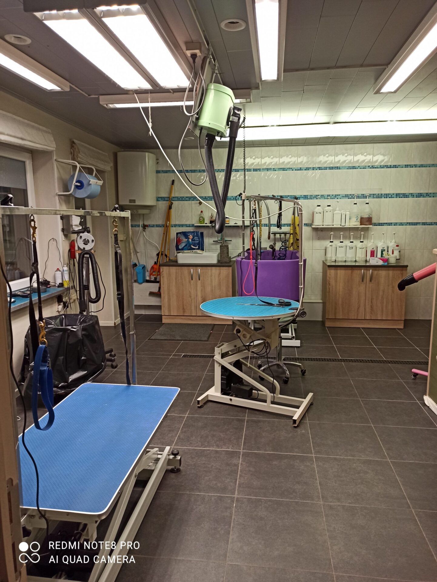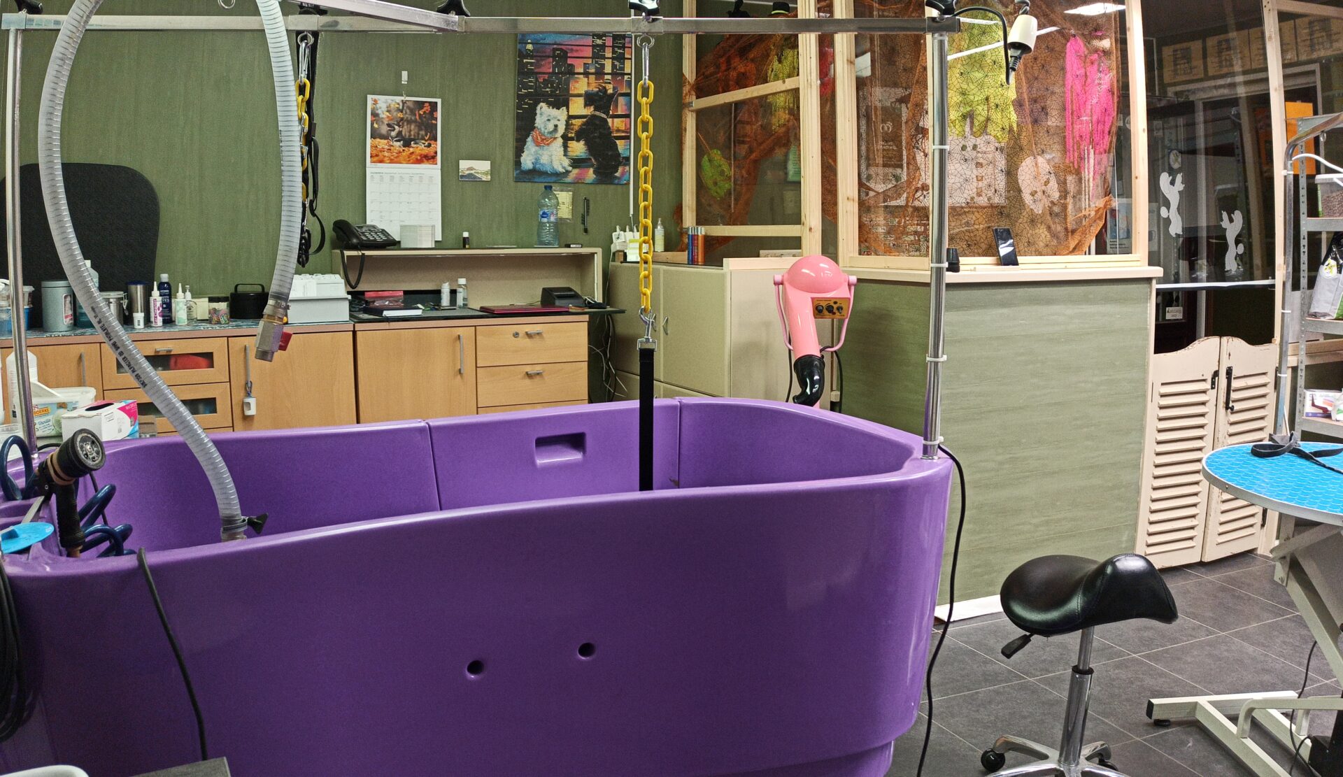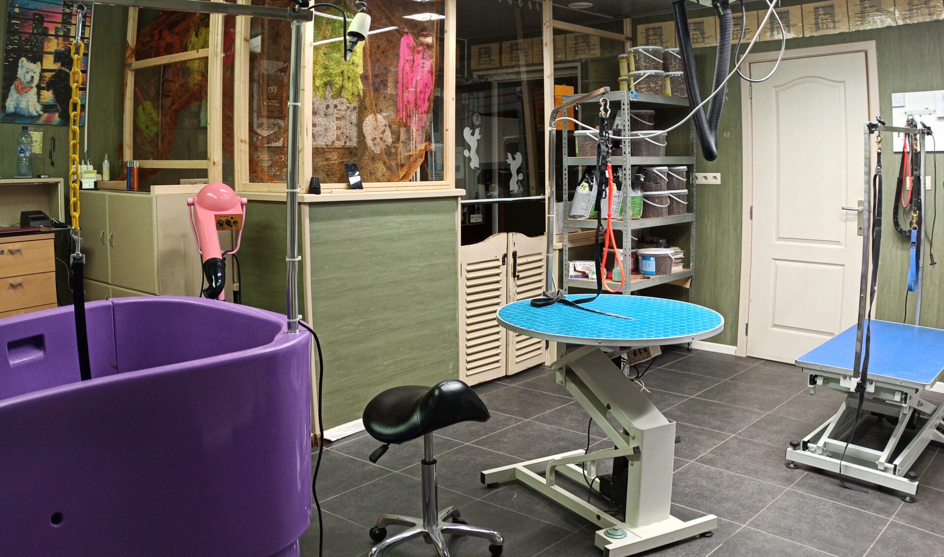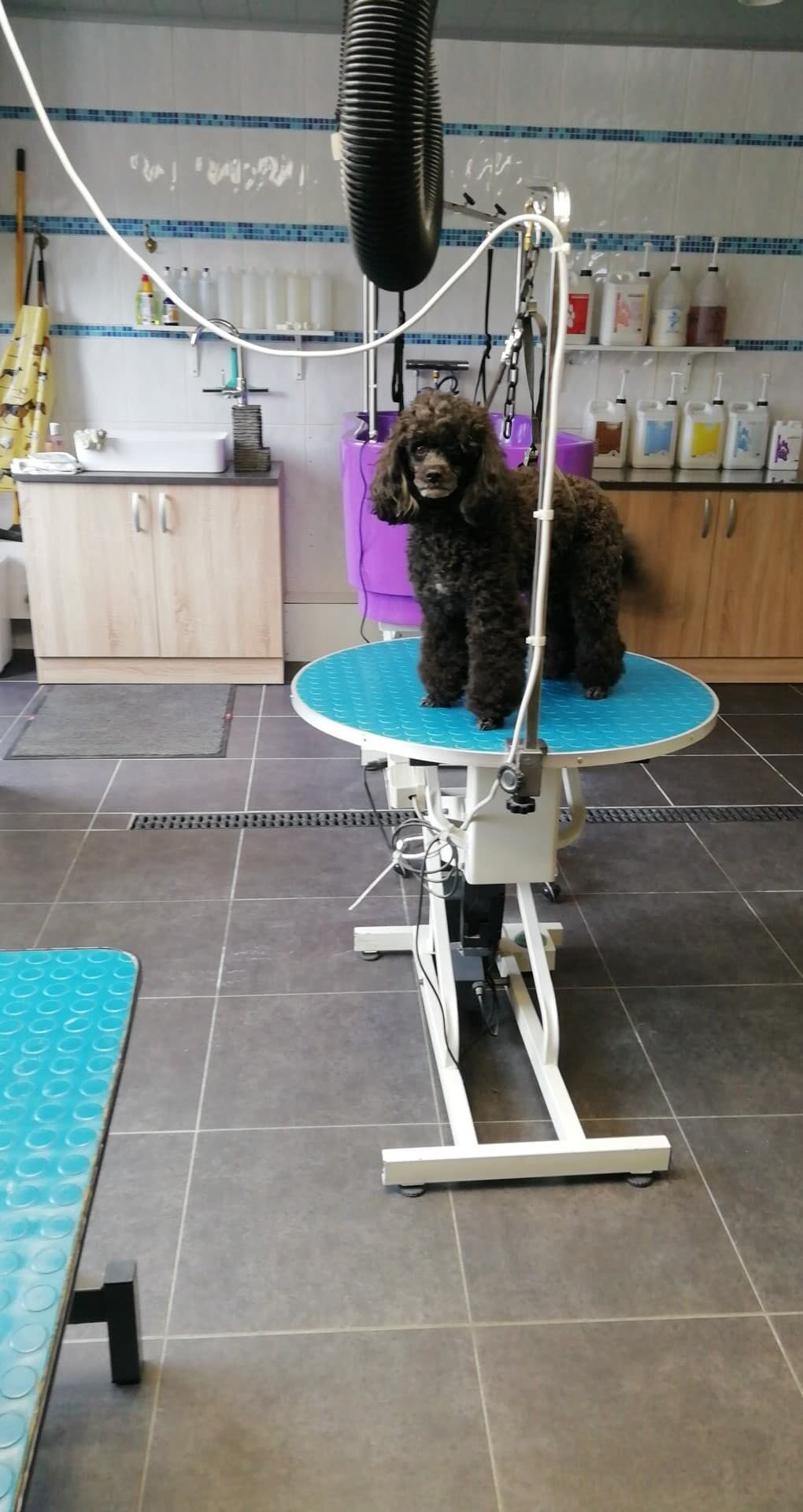 Het trimsalon is vandaag volledig uitgerust met moderne voorzieningen zoals elektrisch verstelbare trimtafels, een hondendroogkast, een in hoogte verstelbaar bad en een goed ventilatiesysteem met airco. Zo blijft het zowel voor je hond als voor mij altijd aangenaam werken.