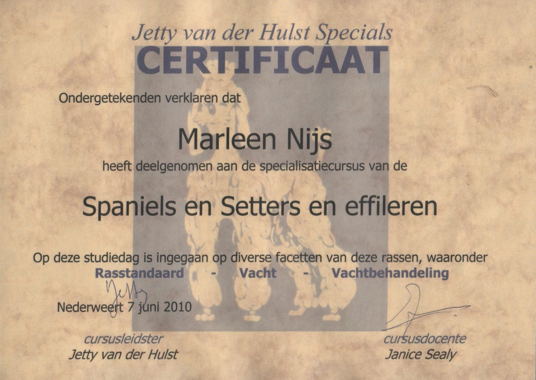 Ik blijf me graag bijscholen bij verschillende vakverenigingen zoals Trimcanis, Jetty van der Hulst, Transgroom, Aicha Vermeulen… zodat ik je ook kan helpen bij vragen of kleine, dagdagelijkse problemen. Voor ernstige gedragsproblemen verwijs ik uiteraard door naar een gedragstherapeut – maar wie weet wat mijn volgende uitdaging wordt?