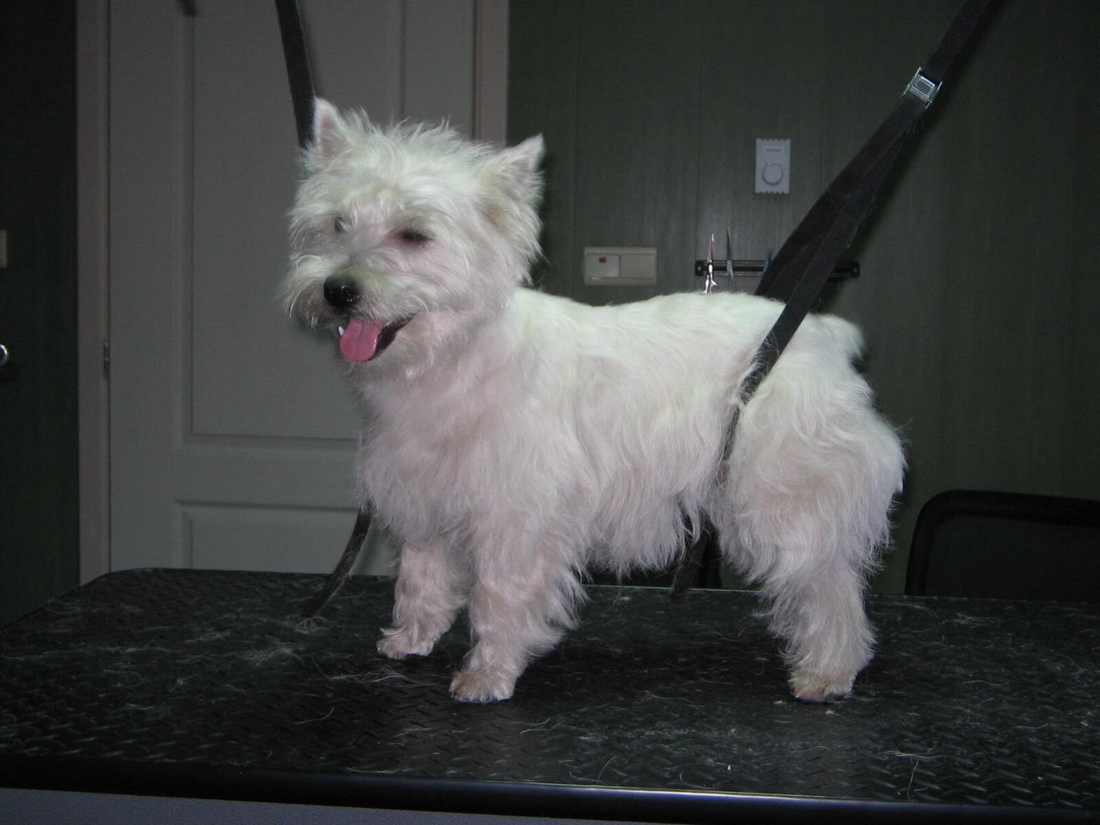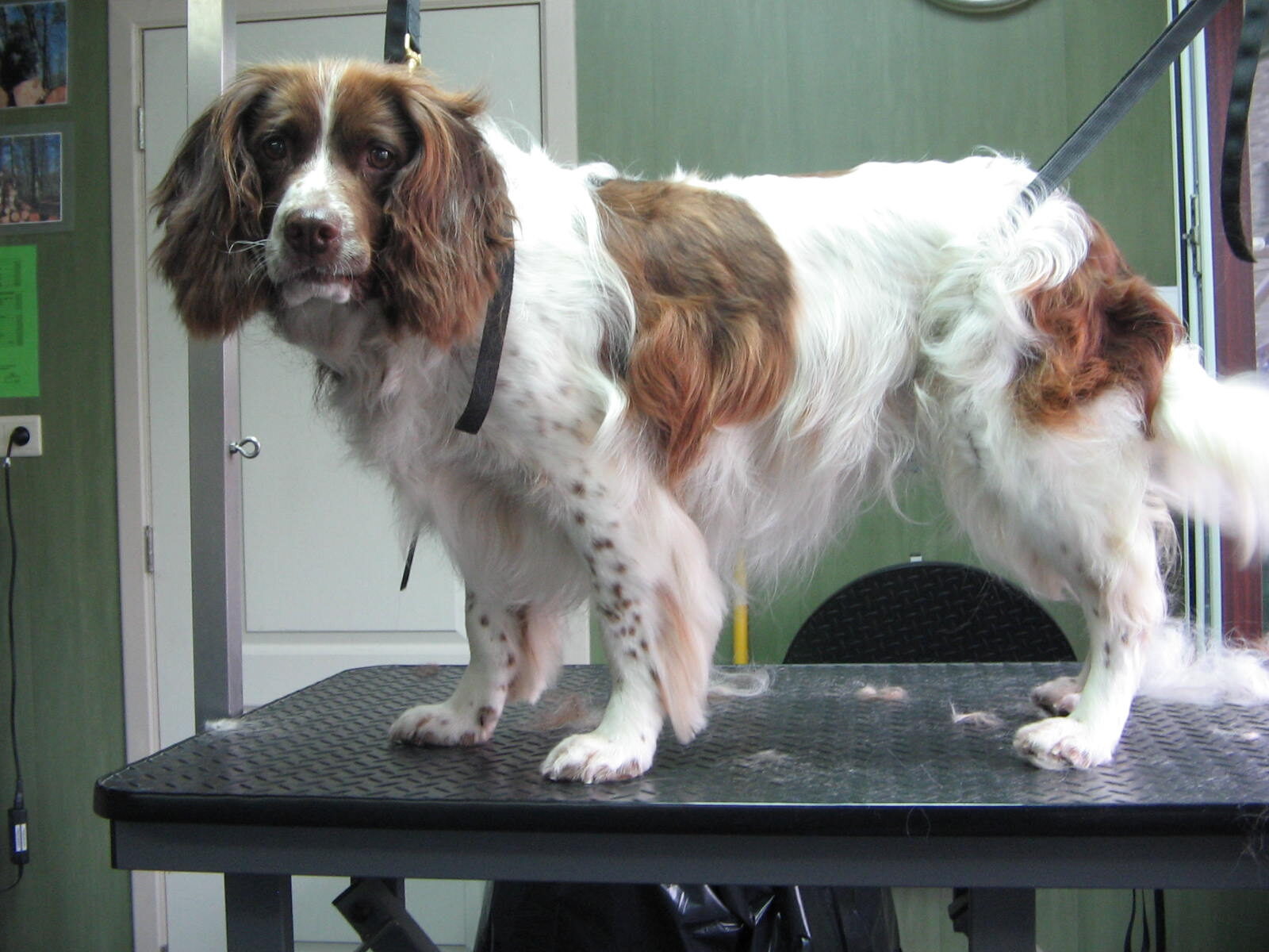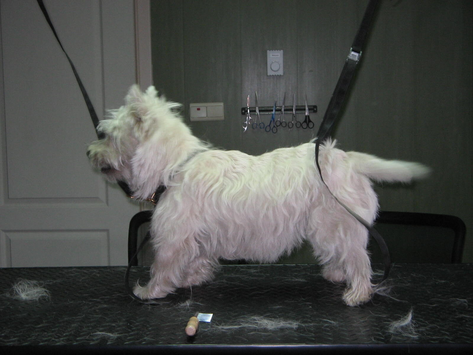 Deze honden komen meestal 2 keer per jaar naar het trimsalon tijdens de rui om ontwolt te worden. De voetjes worden dan ook netjes bijgewerkt met de effileerschaar.
